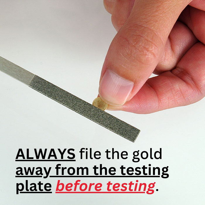 - Follow easy steps including filing to identify non-gold, gold plate, and gold filled as NA