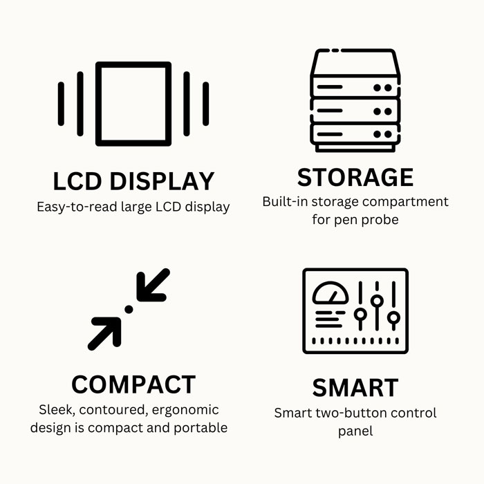 - Dynamic alphanumeric LCD display shows karat value and gold percentage