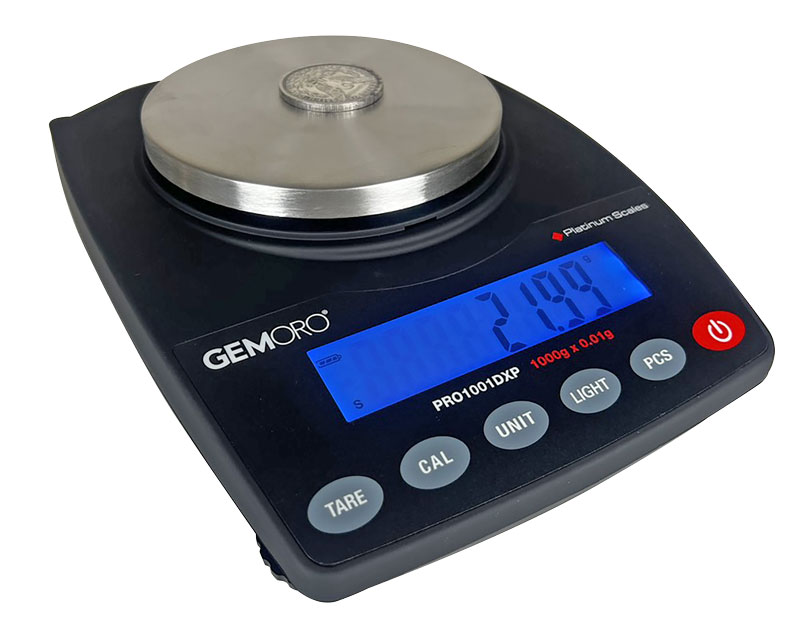 GEMORO has created the ultimate top-of-the-line countertop / portable scale for professional jewelers, findings dealers, precious metals scrap buyers, and gold wholesalers who demand the best. The deluxe Platinum PRO1001DXP offers amazing extra precision, higher capacity, and enhanced features previously only found in European balances that cost well over $1000. Unmatched performance and durability, low profile contoured design, rock-solid stability, extended warranty, and more – all at a real value of a price. It’s no wonder that GEMORO is the leader in precision weighing for the jewelry industry!